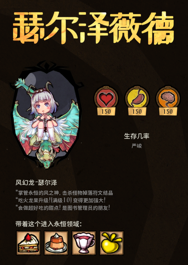 - 满级10级,每升1级三维上限各+15,吃火龙果类食物升级,火龙果类食物包括火龙果、烤火龙果、火龙果派和辣龙椒沙拉(包括调味后的料理)